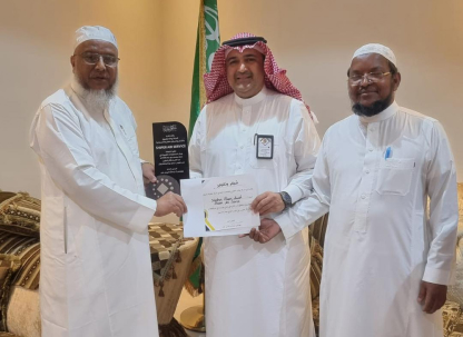 The honor crest and certificate from the Saudi Muallim were dedicated by Shiper Air Service to our esteemed pilgrims. Satisfied with the 2024 service, Muallim Eng. Abdullah Faysal Niamat Khan presented the awards to Shiper Air Service owner Khondoker Shiper Ahmed.